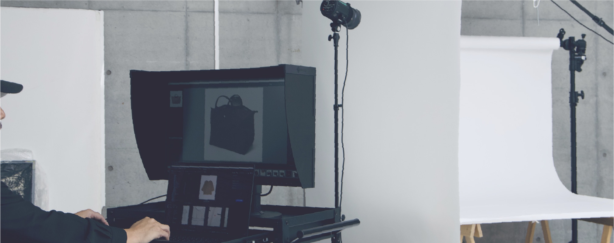 御社内のスペースを活用したスタジオを構築します。納品されたサンプル・商品を移動させることない「スピーディな撮影・公開」ブランド担当との細かいやり取りによる「クオリティの確保」加えて急な社内依頼の調整や納期の短縮など様々なメリットを提供してまいりました。